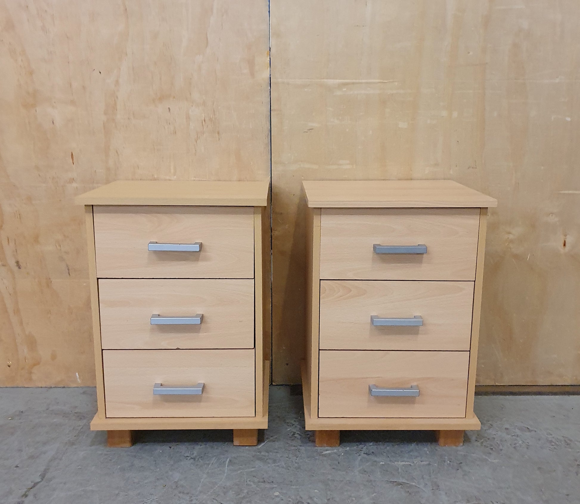 2 Matching 3 Drawer Wood Bedside Cabinets - EL104913 / EL104914