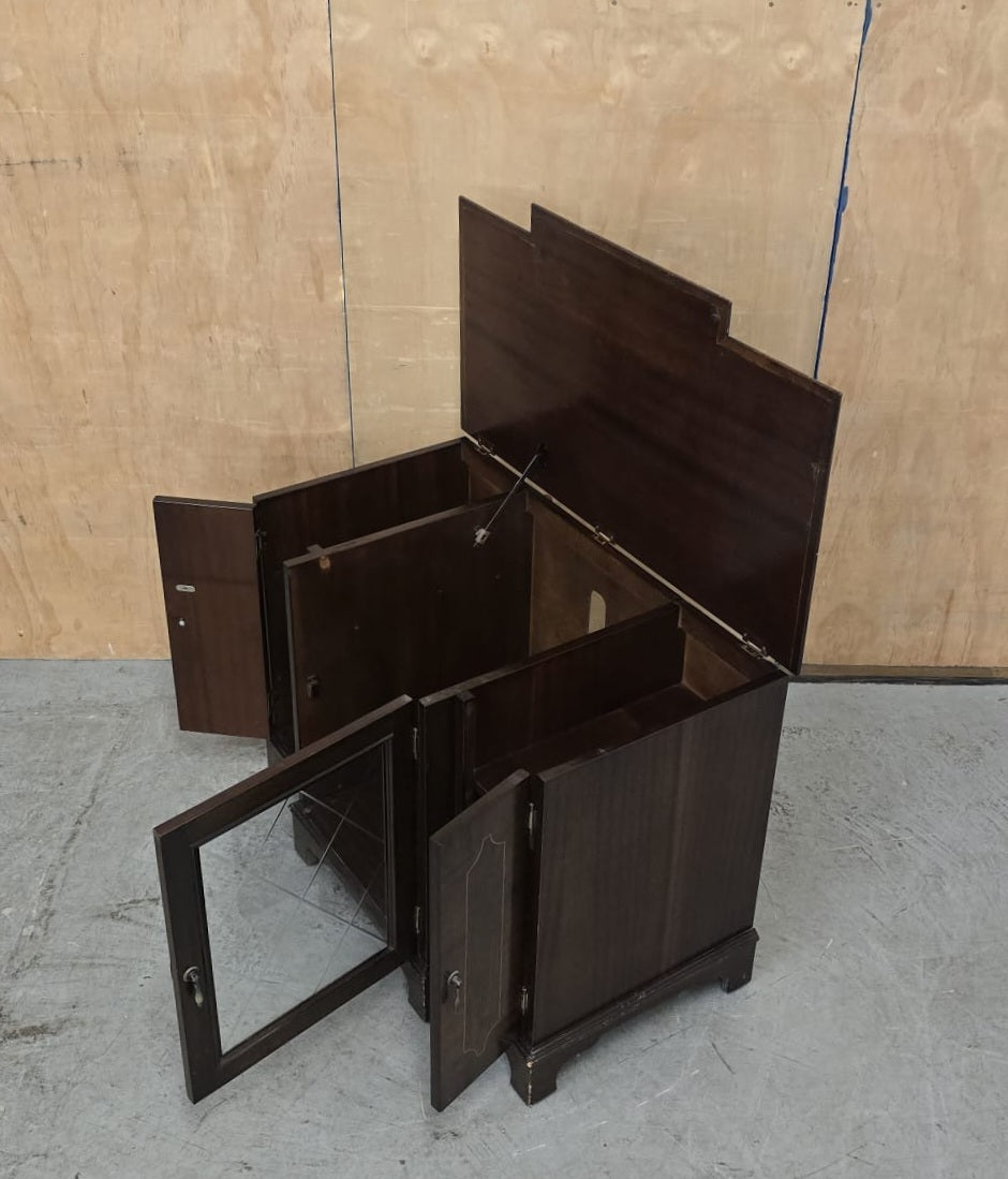Vintage Mahogany Cabinet with 3 Doors and Open Top - 140925-04