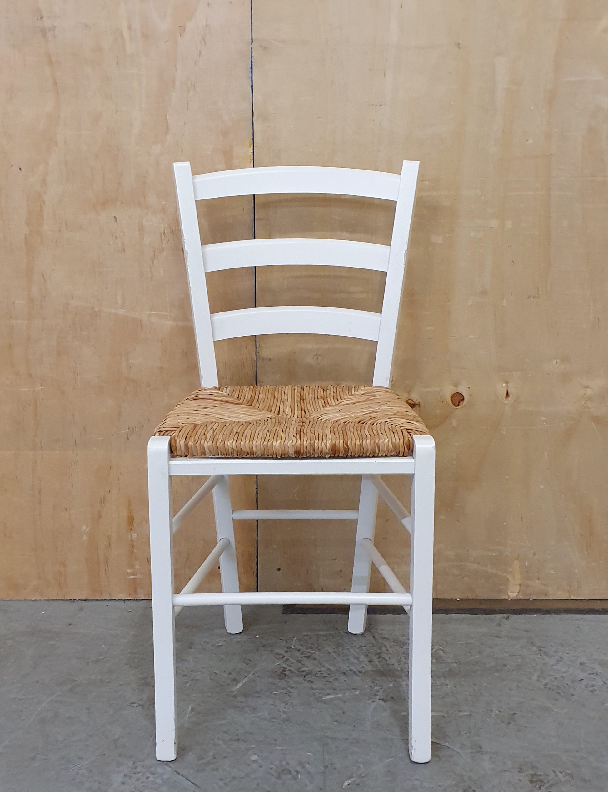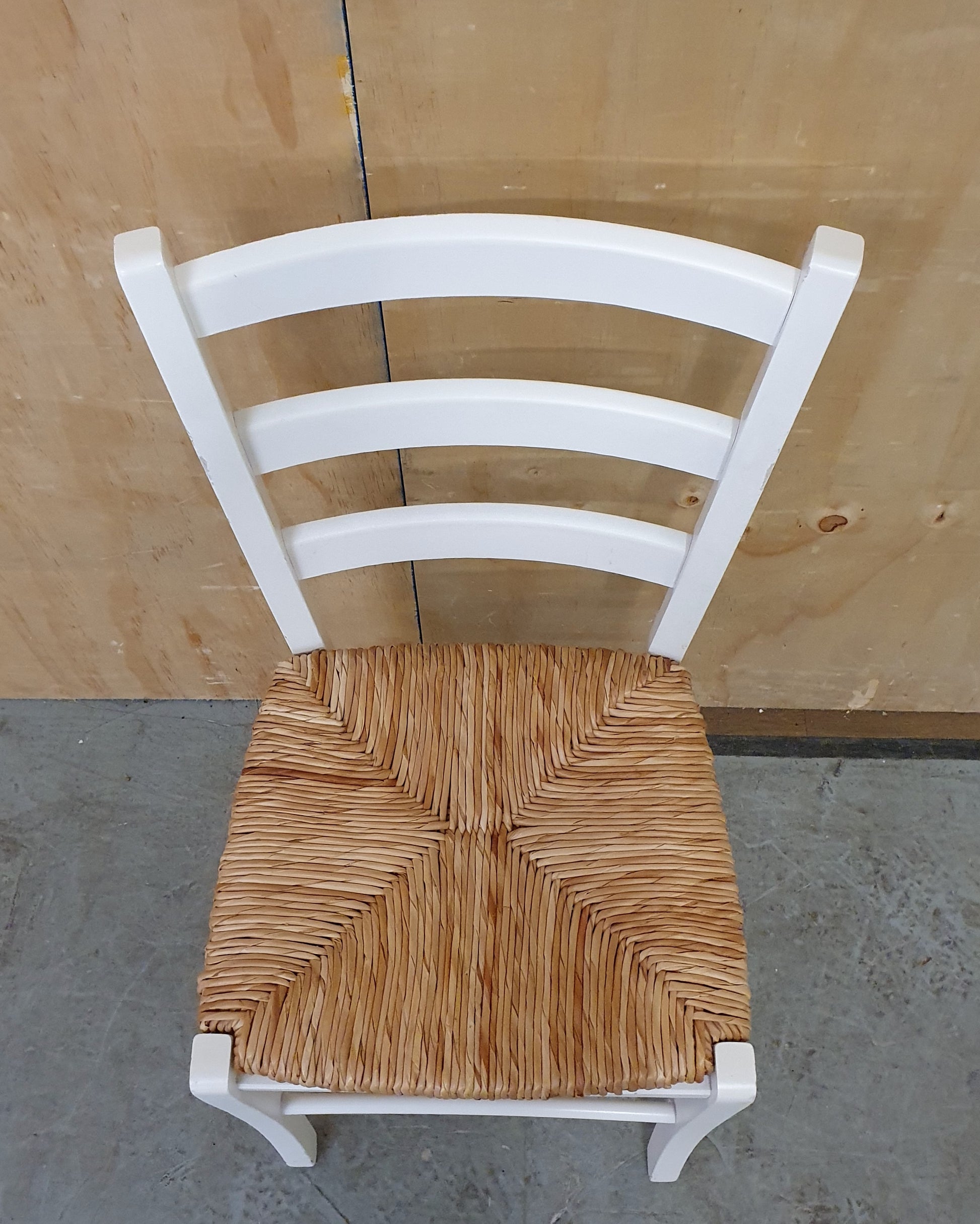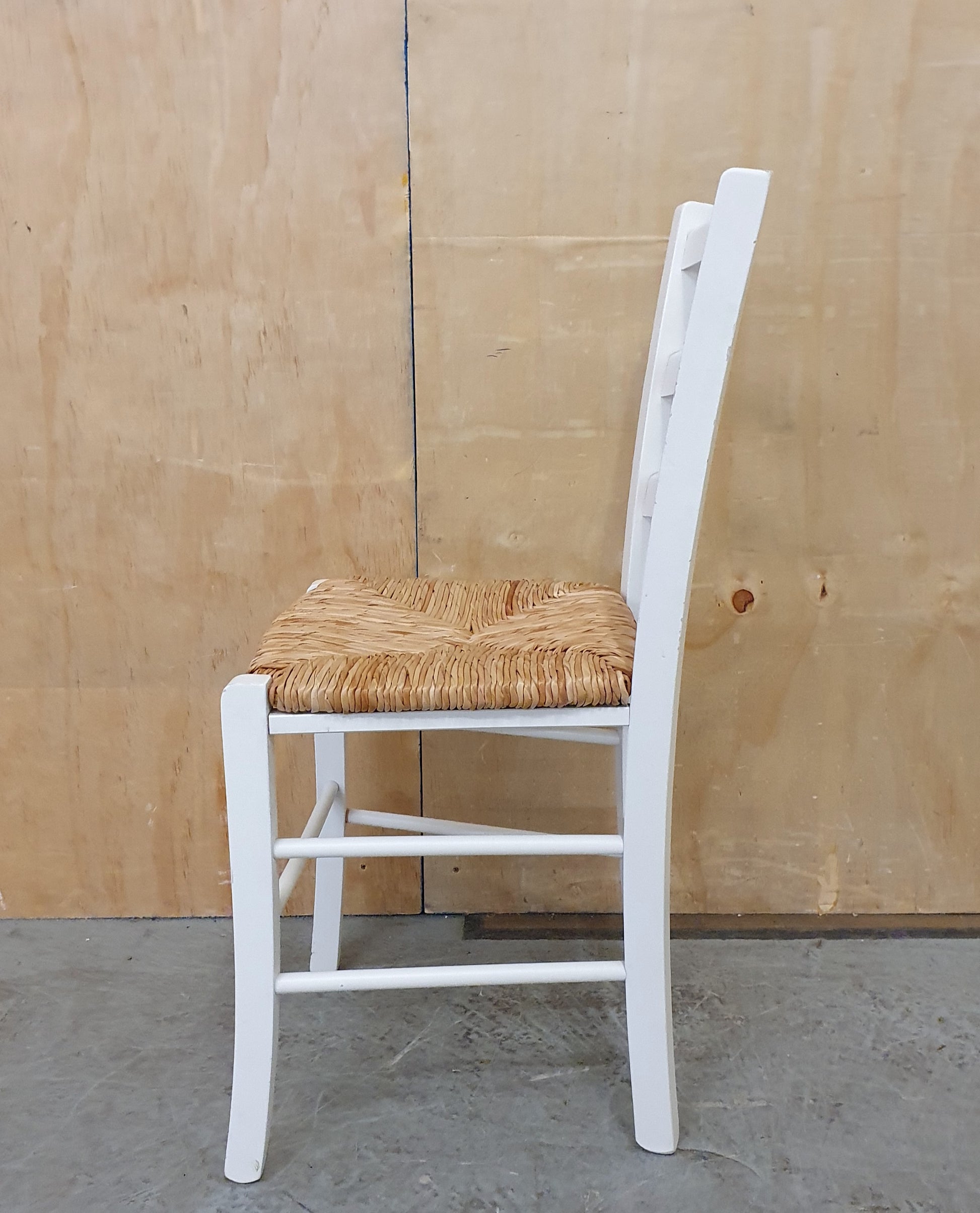 Single White Wood Chair with Straw Seat - EL104928
