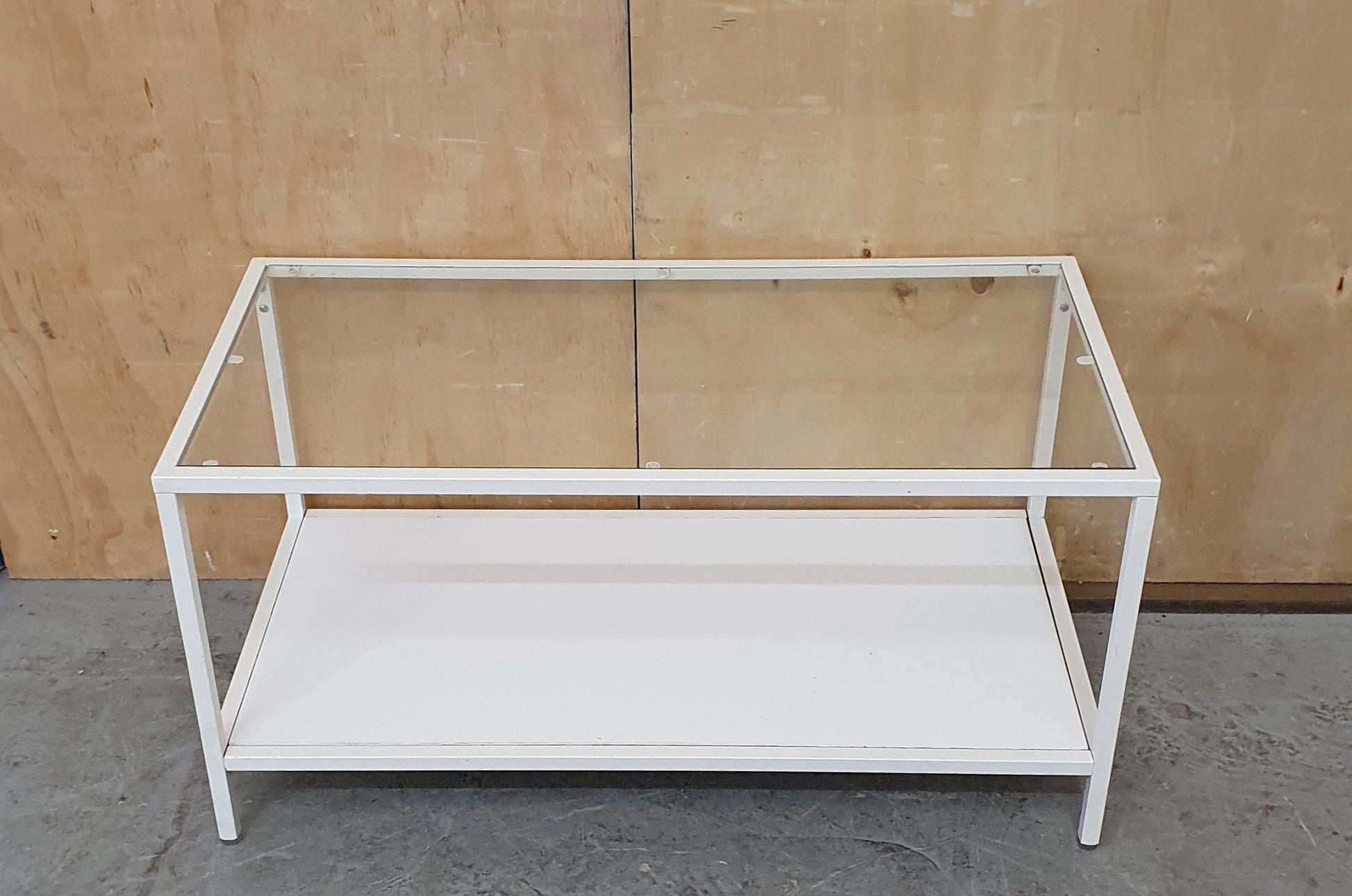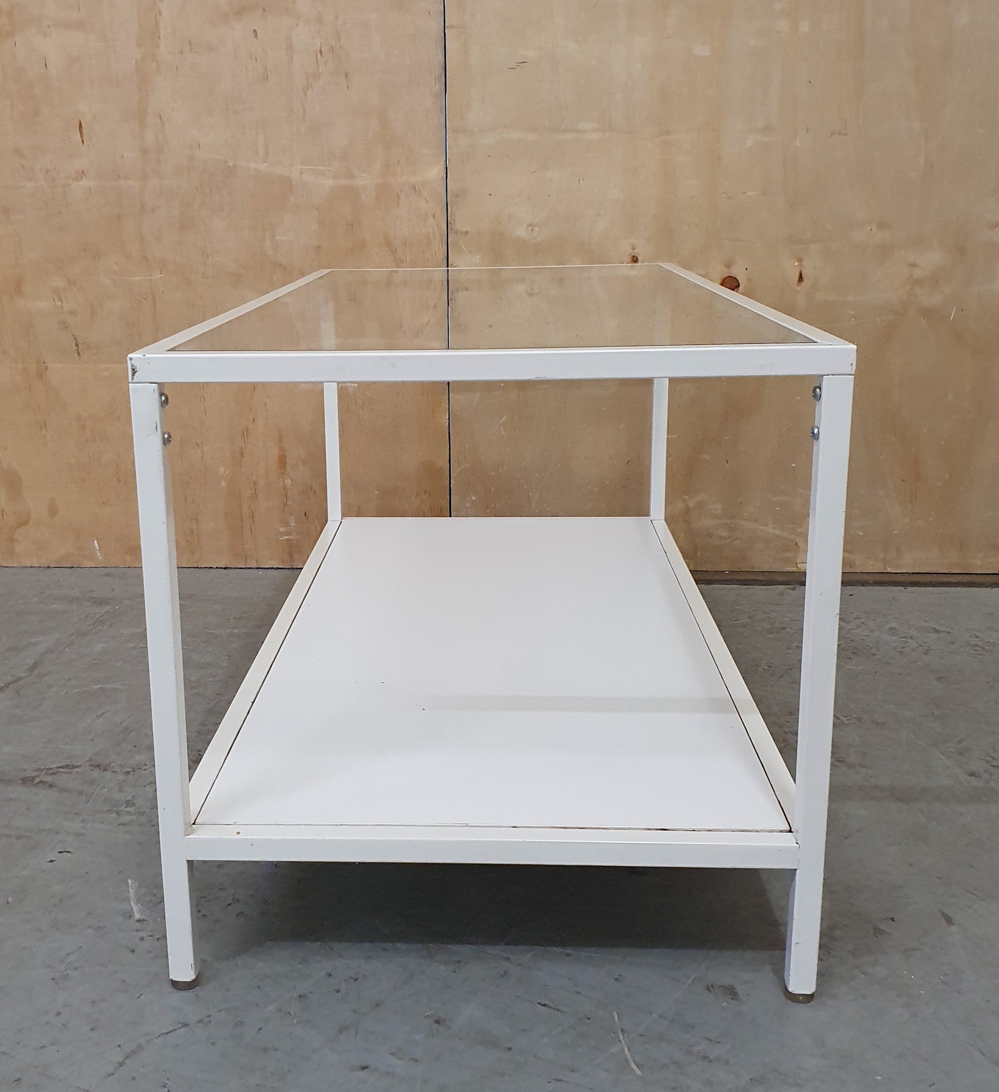 Modern White 2 Tier Coffee Table with Glass Top and Metal Frame - 104881