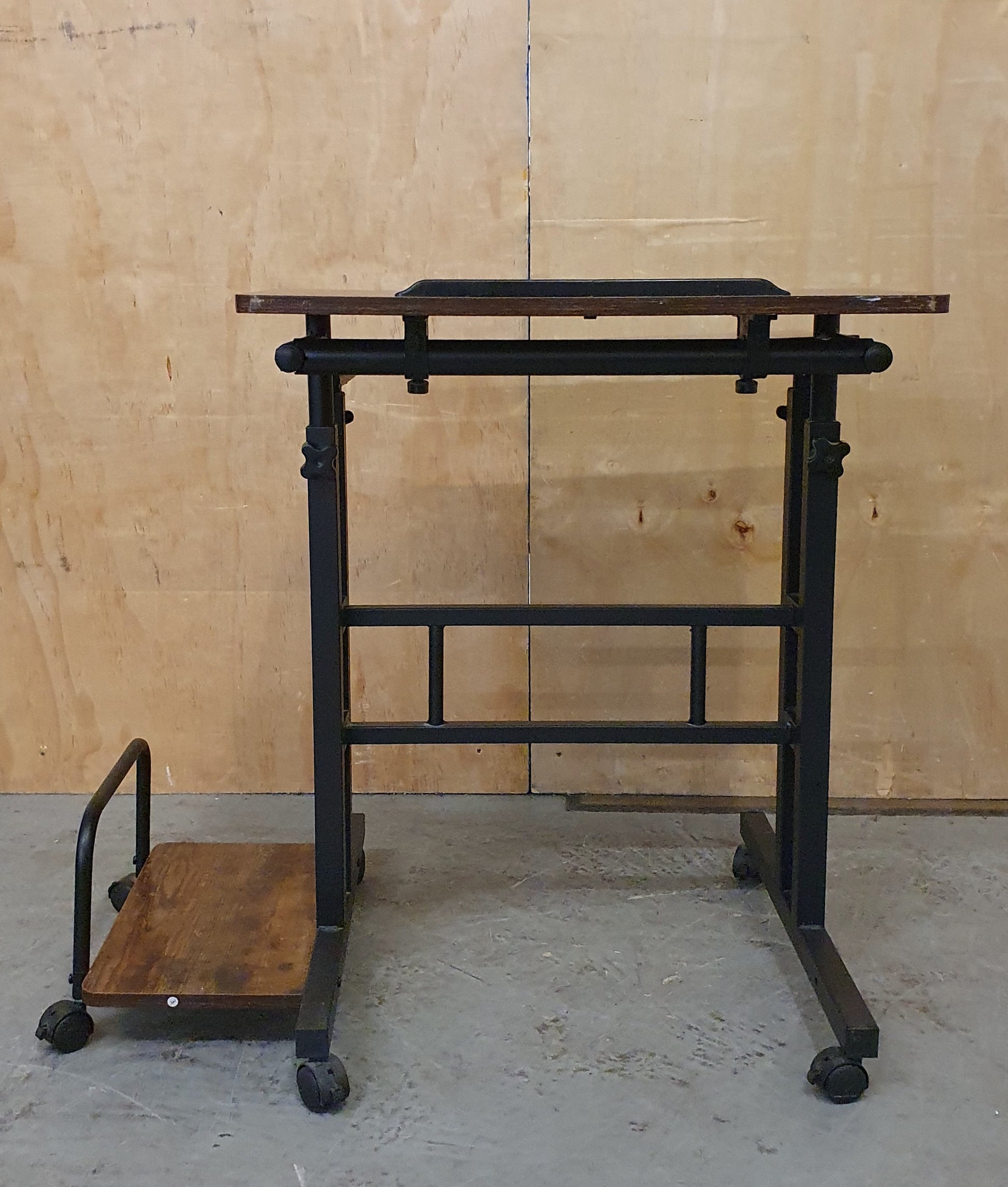2 Tier Height Adjustable Small Wood Desk with Black Metal Frame - 104884
