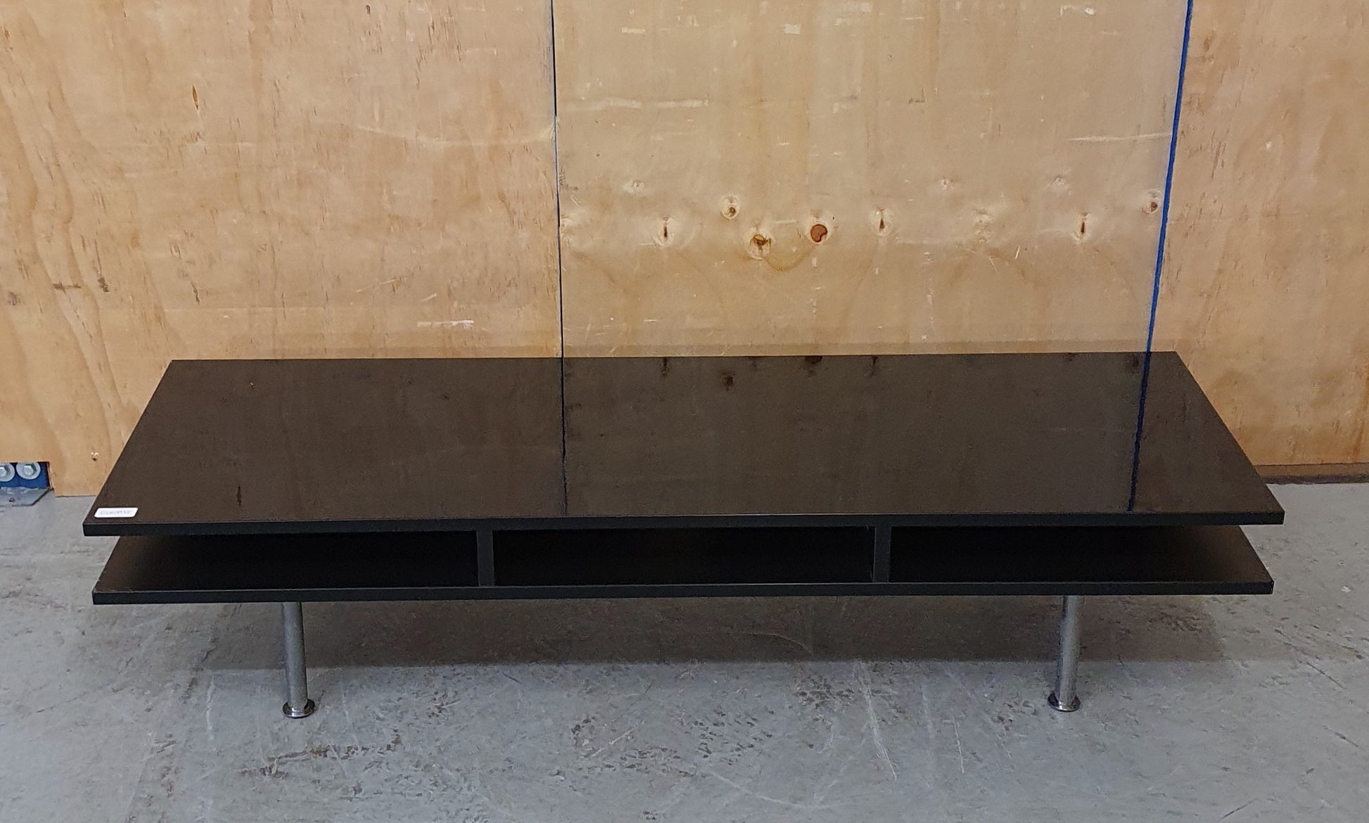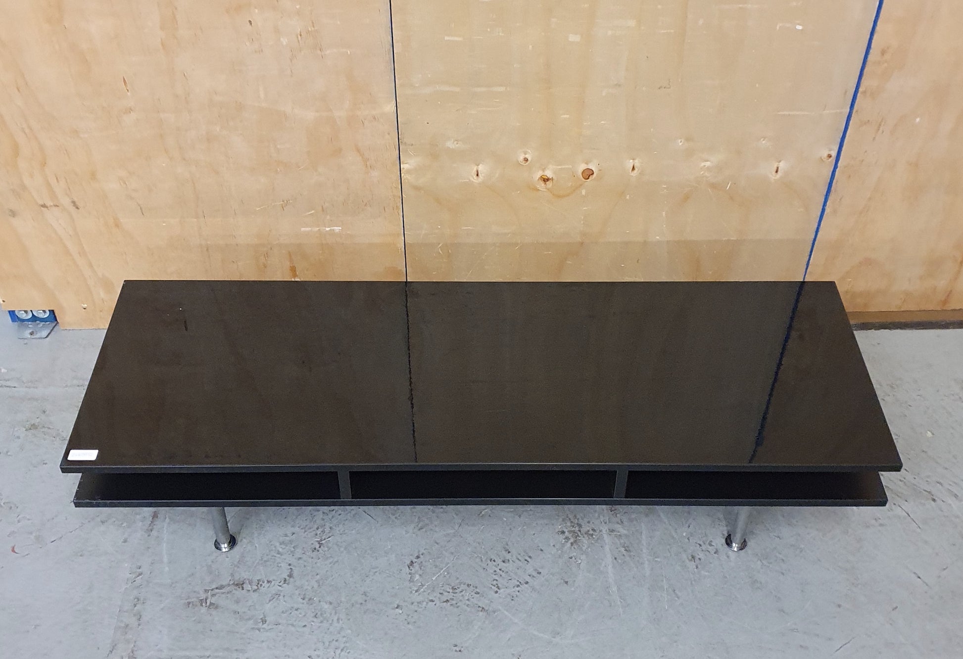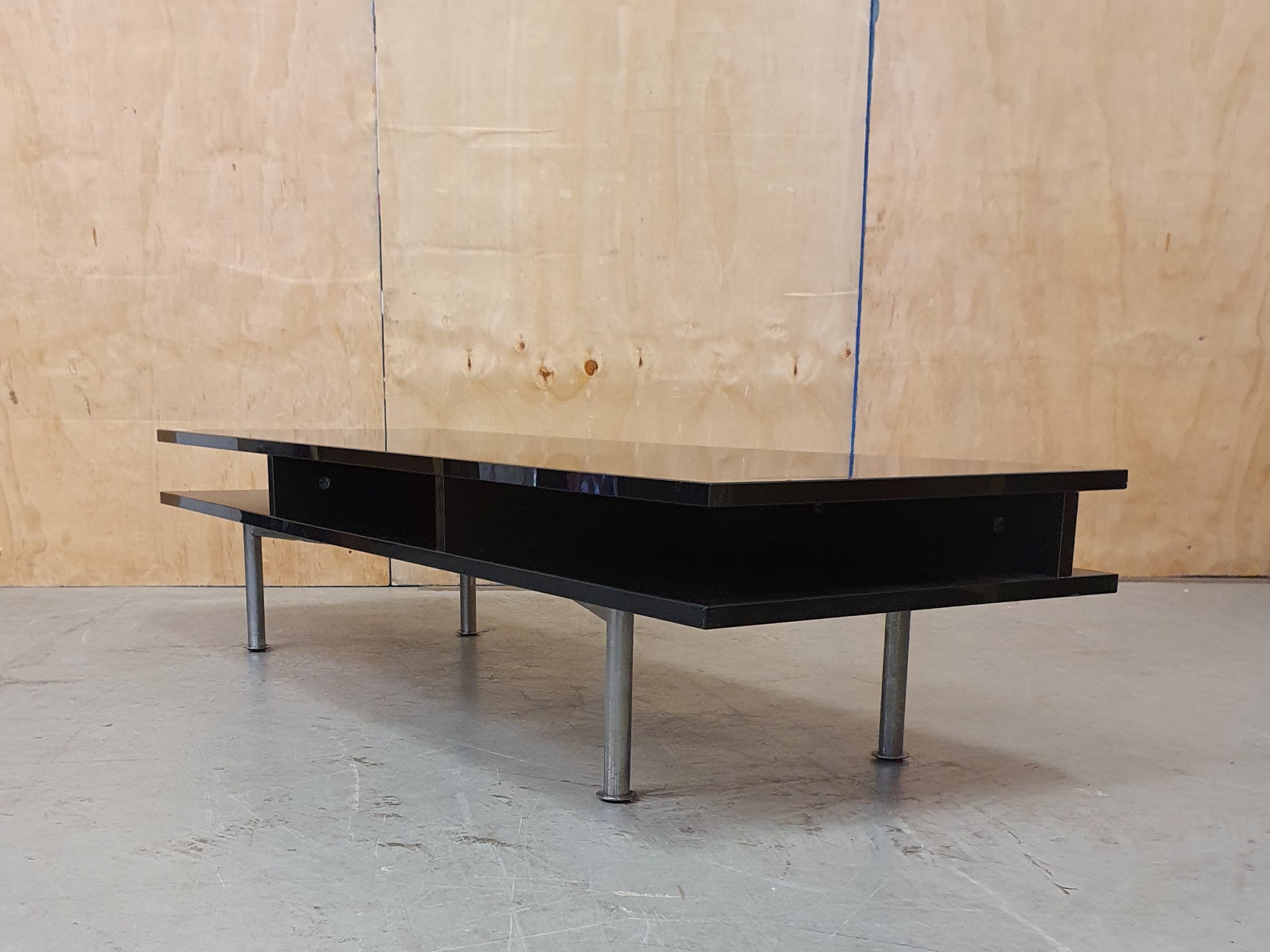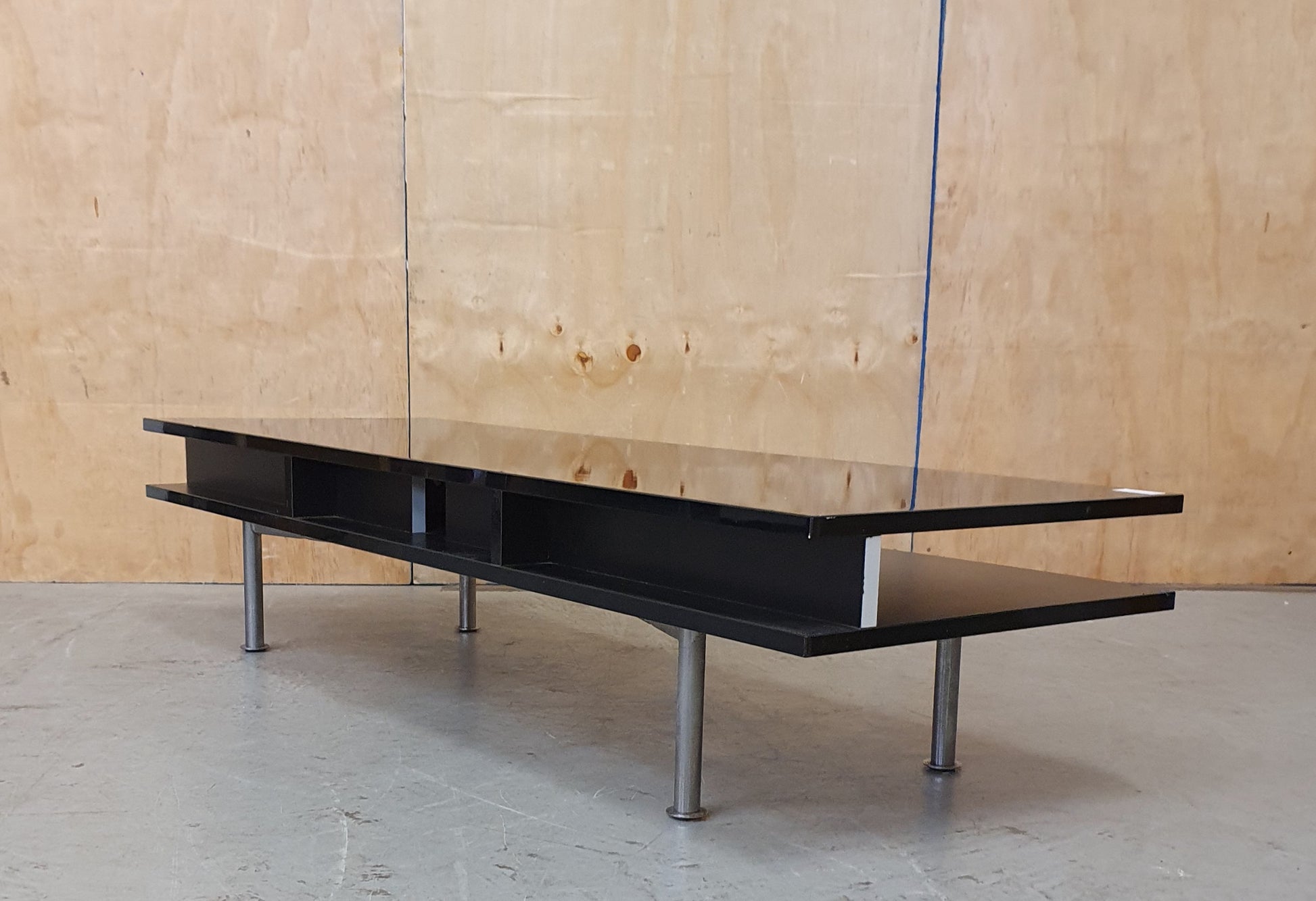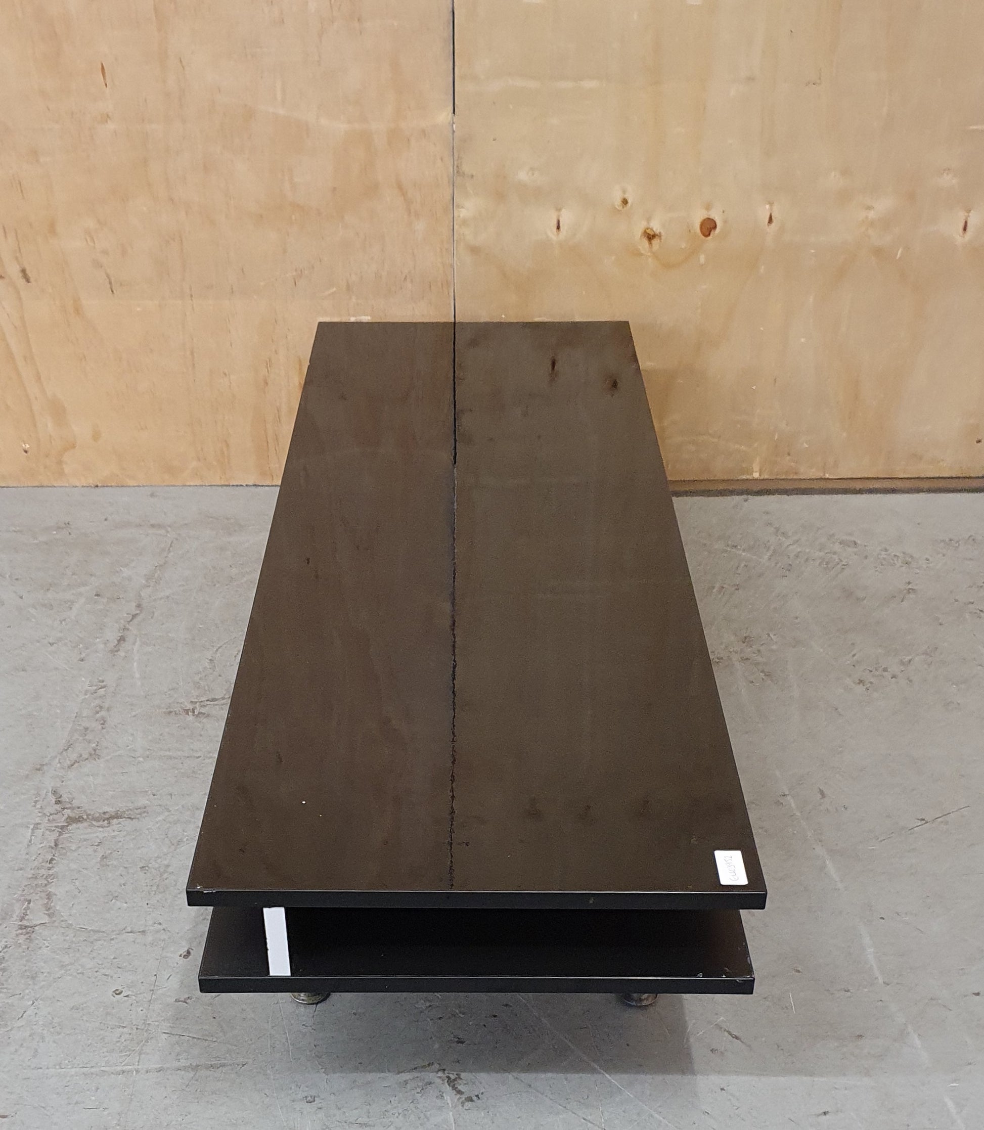 Black Low Glass Coffee table with Two Sections and Chrome Feet - EL103952