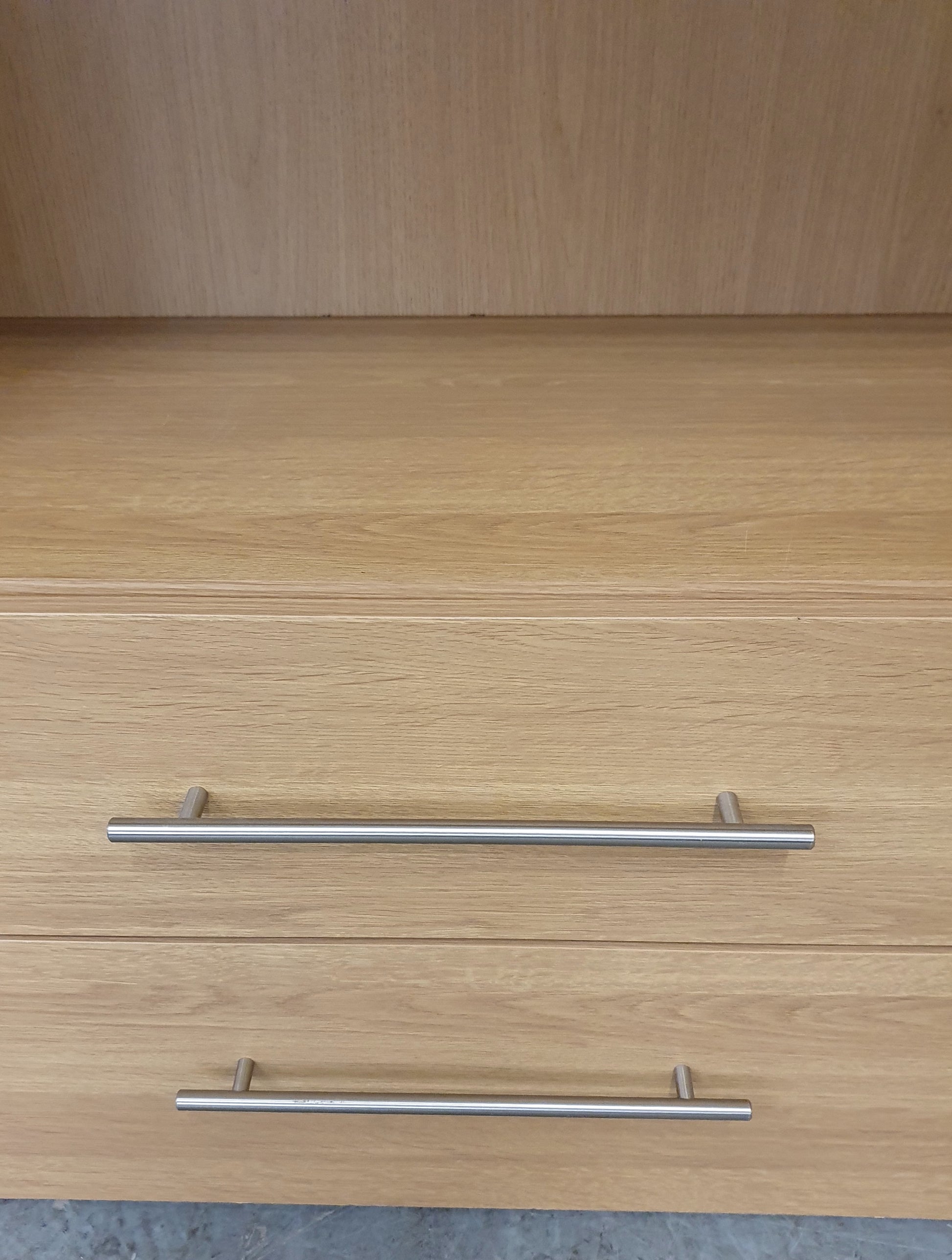 Chrome Bar Handles on Drawers