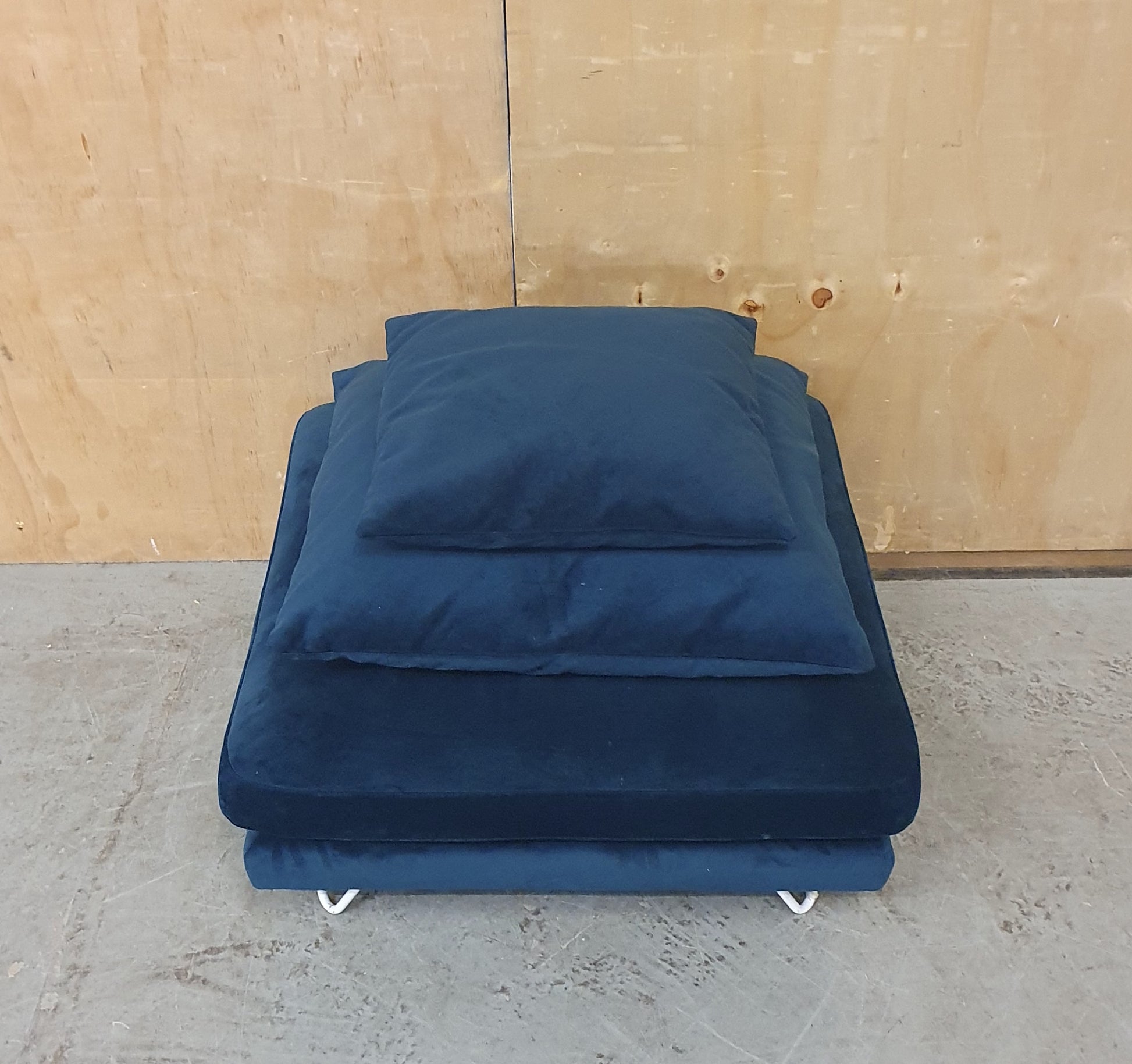 Large Navy Blue Velvet Pouffe Footstool with 2 Additional Cushions - 290925-10