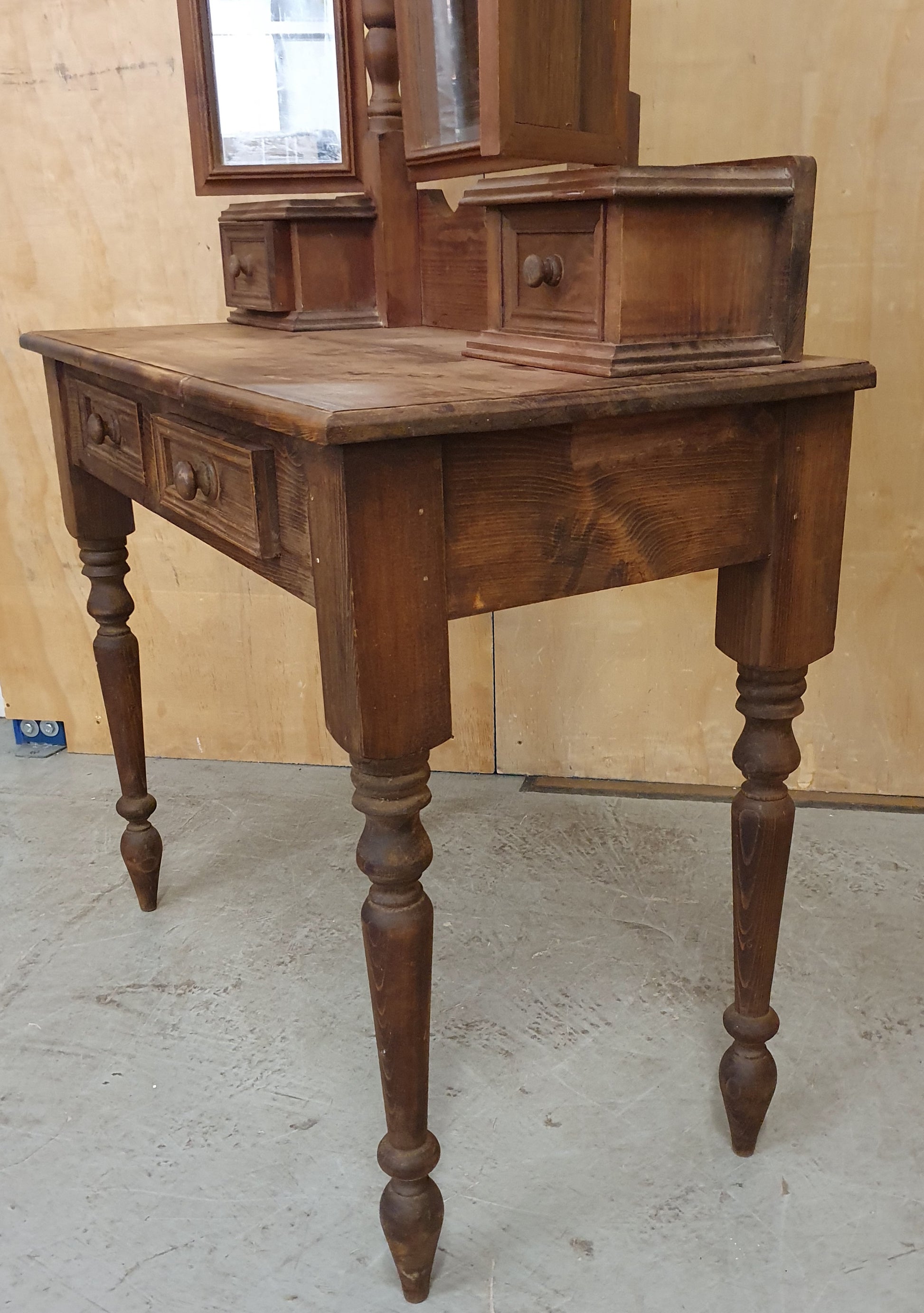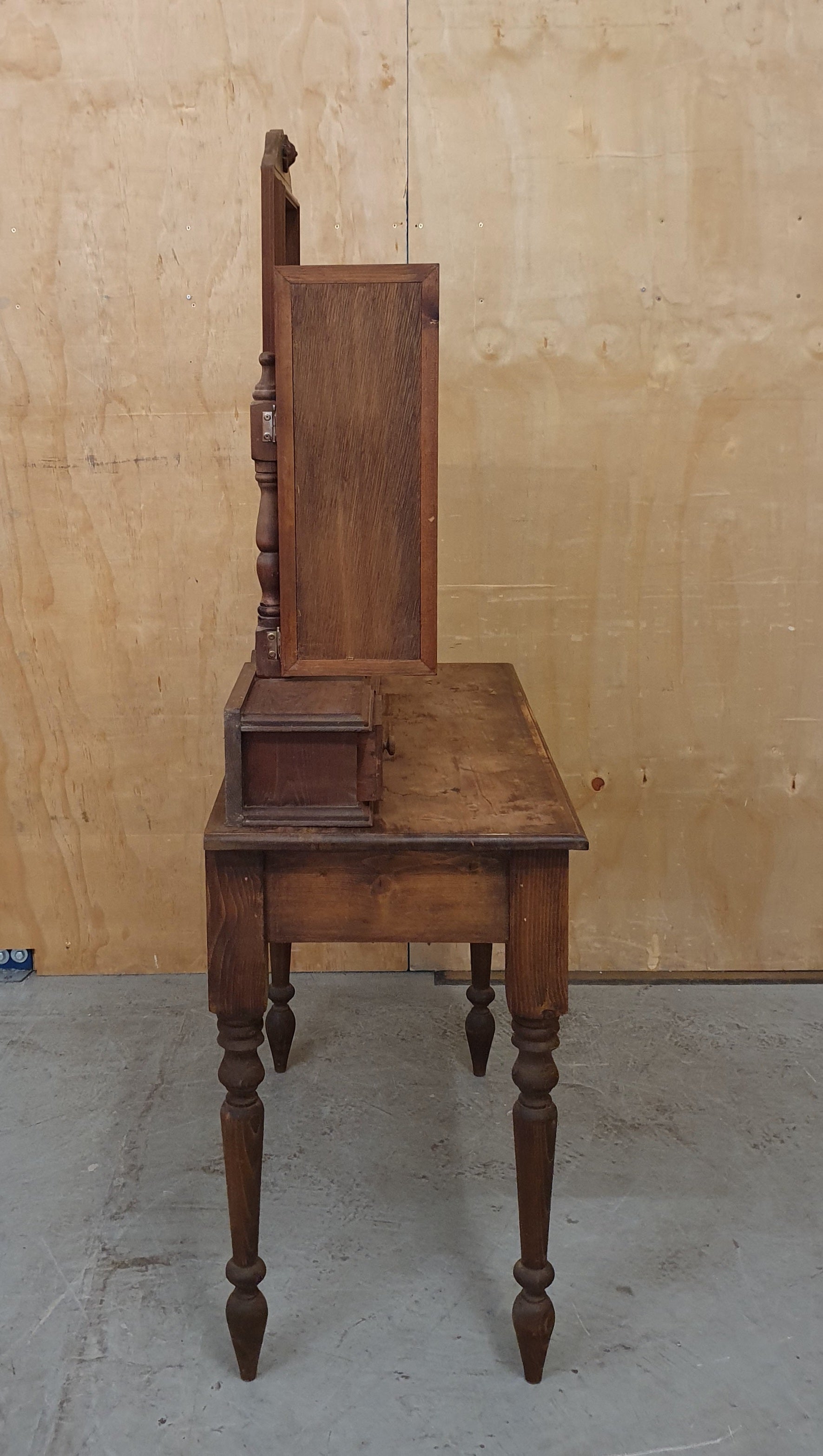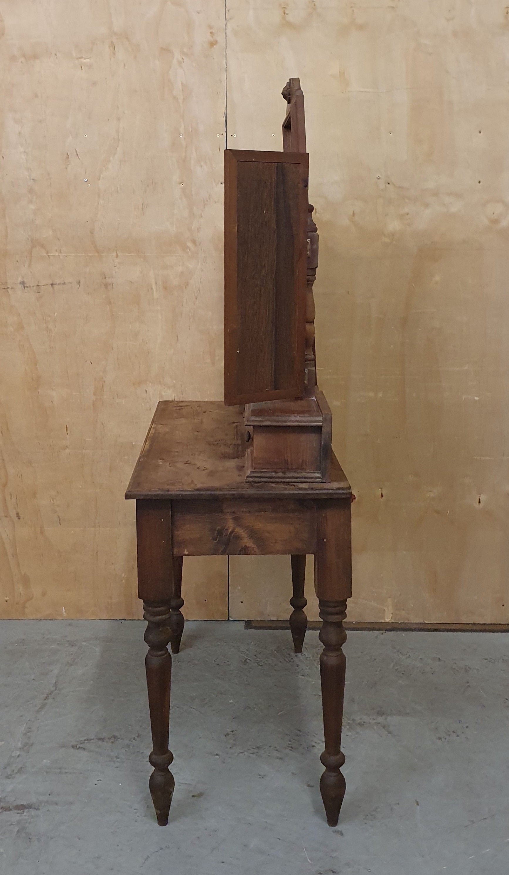 Vintage Dark Stained Wood Dressing Table with Removable Top Mirror Section - 104840
